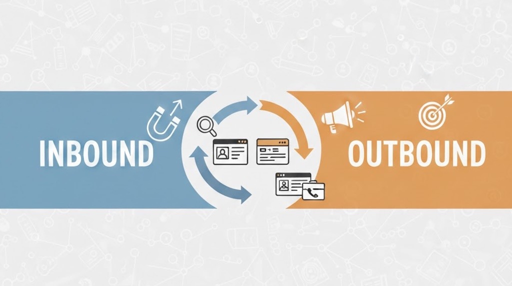 インバウンドは「見つけてもらう」仕組み作り、アウトバウンドは「自ら機会を作る」攻めの姿勢という異なる役割があります。