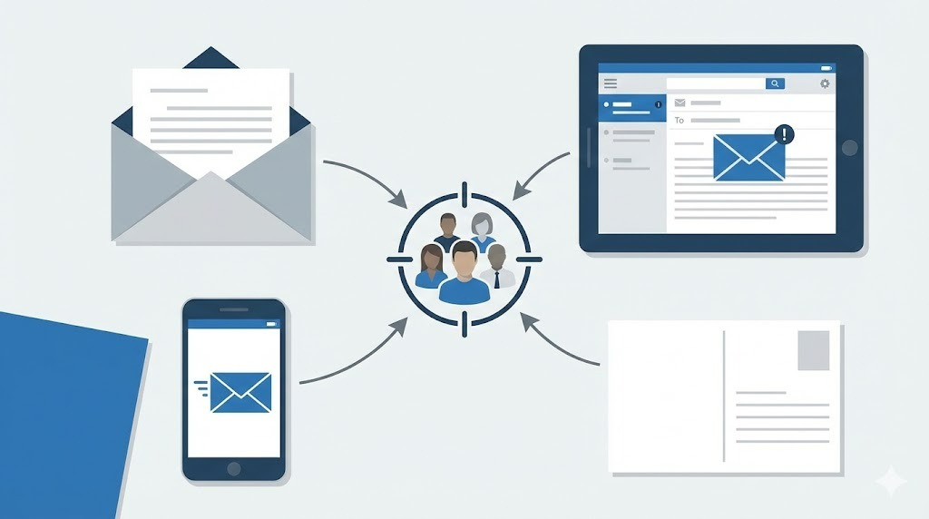 送付方法は、ターゲットや商材によって最適なものが異なります。 郵送DMは、実物を手元に届けられるため、開封率が高く、保存性が高いのがメリットです。 一方、メールDMはコストが低く、即時性があり、URLクリックなどの行動測定が容易です。 最近では、SNSを活用したDMも増えており、よりカジュアルな接点を持ちたい場合に有効です。