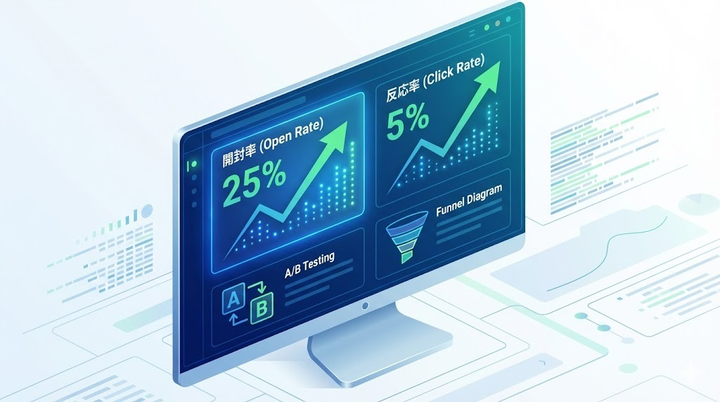 測定結果をもとに、次回の施策に向けた改善を行います。 開封率が低い場合は件名や送付タイミングを見直し、反応率が低い場合は本文の訴求内容やCTAの位置を変更します。 一度にすべてを変えるのではなく、A/Bテストを用いて一箇所ずつ検証することで、勝ちパターンを見つけやすくなります。 地道な改善の積み重ねが、最終的な成果の最大化につながります。