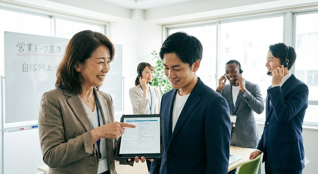 トークスクリプトは、新入社員の教育にかかる時間とコストを大幅に削減します。最初から「何をどう話せばよいか」という正解が用意されているため、早期の戦力化が可能です。