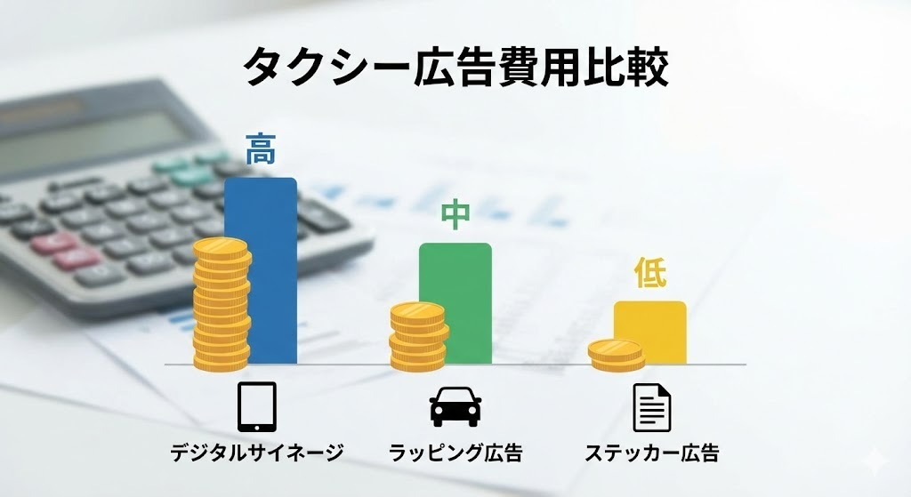タクシー広告の費用相場を知りたい担当者へ。デジタルサイネージやステッカーなど種類別の料金目安から、費用対効果を高めるポイントまで解説。ターゲット層へ確実に届く広告運用の秘訣を公開します。BtoBマーケティング担当者にもおすすめの広告手法です。