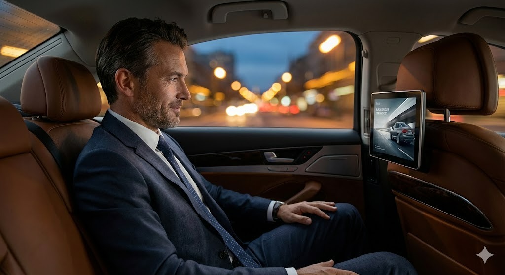 最大のメリットは、決裁者層への到達率の高さです。 経営者や役職者はタクシー移動の頻度が高く、かつ車内では手持ち無沙汰になりがちです。 その隙間時間に広告を見てもらうことで、高い完全視聴率と認知獲得が期待できます。 また、閉鎖空間であるため、他の情報に邪魔されず、広告内容に集中してもらえる点も強みです。
